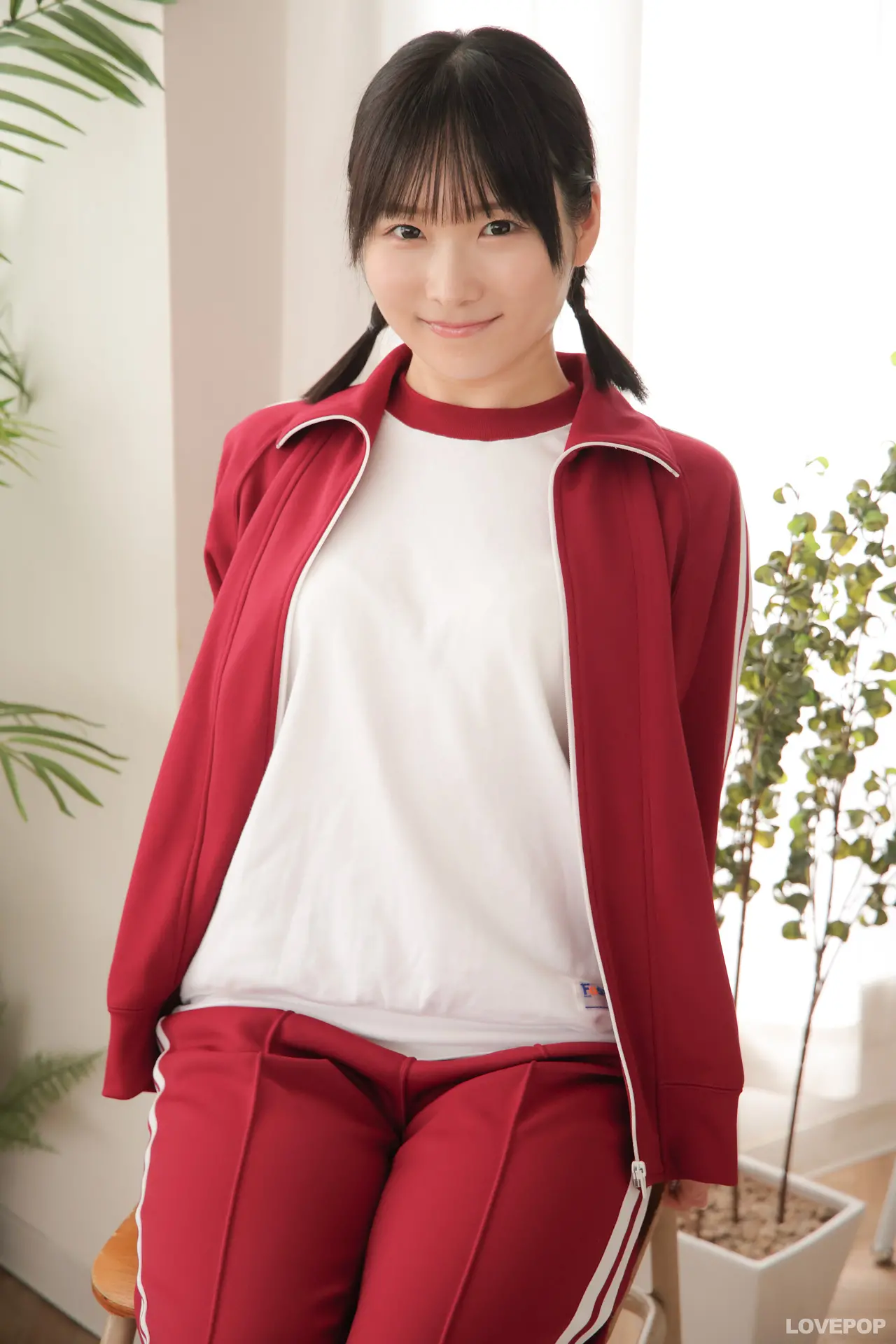 愛くるしい笑顔でこちらを見つめる瞳が眩しい!ジャージ越しのお尻も最高です!